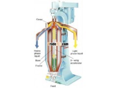 A slow acceleration special motor and starter operates this machine. The slurry is fed through the bottom of the bowl and the separation takes place inside the bowl by centrifugal force created by high speed. It creates separate circle of layers and comes out continuously through the bowl top and further separate discharges through covers.